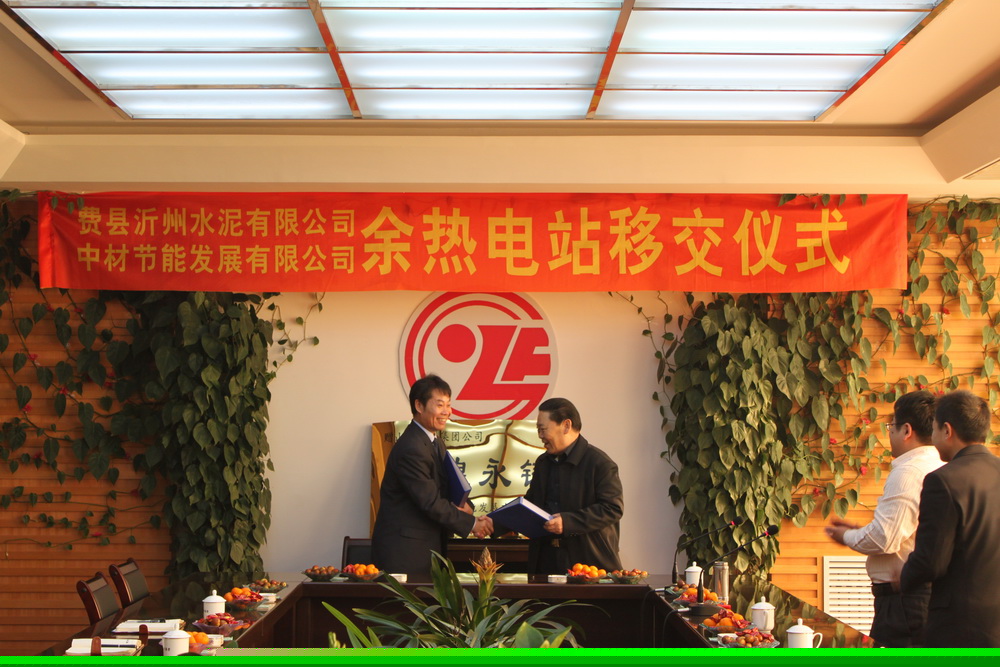 上午9時18分,費縣沂州水泥有限公司5000t/d熟料水泥窯余熱電站移交儀式正式開始。公司總經(jīng)理何新平、副總經(jīng)理葛立武、現(xiàn)場經(jīng)理晏琳灃及沂州集團公司黨委書記張懷連、費縣沂州水泥有限公司總經(jīng)理主冠強、副總經(jīng)理徐世杰等共同出席了移交儀式。在移交儀式上何總、葛總與張懷連書記親切交談并共同簽署了余熱電站移交文件。