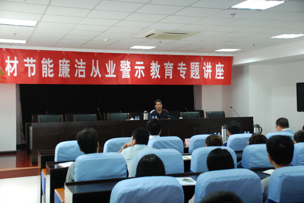 9月3日,中材節(jié)能舉辦廉潔從業(yè)警示教育專題講座,邀請全國十佳反貪局長、天津市北辰區(qū)人民檢察院偵查監(jiān)督科科長謝玉忠作專題講座。講座由公司黨委書記劉習(xí)德主持。公司總經(jīng)理何新平等在津經(jīng)營班子成員、本部各職能部門負(fù)責(zé)人等干部職工共90余人聽取了講座。