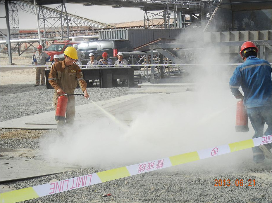 下午16:00,隨著應急救援總指揮---項目管理中心副總經理王品一聲令下,演練活動正式開始。江蘇恒遠安全員發現一帶頭罩恐怖嫌疑人偷偷靠近辦公室,將一黃色包裹藏匿在恒遠辦公室下邊,并進入加工場地將可燃物點燃,隨即報告項目經理。項目經理宣布啟動防恐應急預案,安全員指揮疏散、搶險、救護、保衛等職能組迅速投入戰斗。疏散組負責組織營地人員從辦公室及制作場地向安全區域疏散,到達集合點點名,將點名結果向項目經理匯報。搶險組負責組織人員擒獲恐怖嫌疑人,使用滅火器及時將火撲滅。救護組負責送受傷人員到廠區醫務室。保衛組搶救物資、控制損失,劃定事故警戒區,保護事故現場不遭破壞。經過大家的共同努力,嫌疑人被擒獲,火災撲滅,附近人員安全疏散。項目經理報告當地公安機關,請求處理危險背包及嫌疑人,并向總指揮報告事件處理情況。16點25分,總指揮宣布演練結束。整個演練歷時25分鐘,涉及人員60余人。動用6公斤滅火器2具,申請業主消防車一臺備用,急救車1臺(項目部商務車代替)。過程緊張有序,指揮有力,各部門職責明確、配合默契,全體人員認真投入、反應敏捷,圓滿完成了此次防恐應急預案演練的各項程序要求。