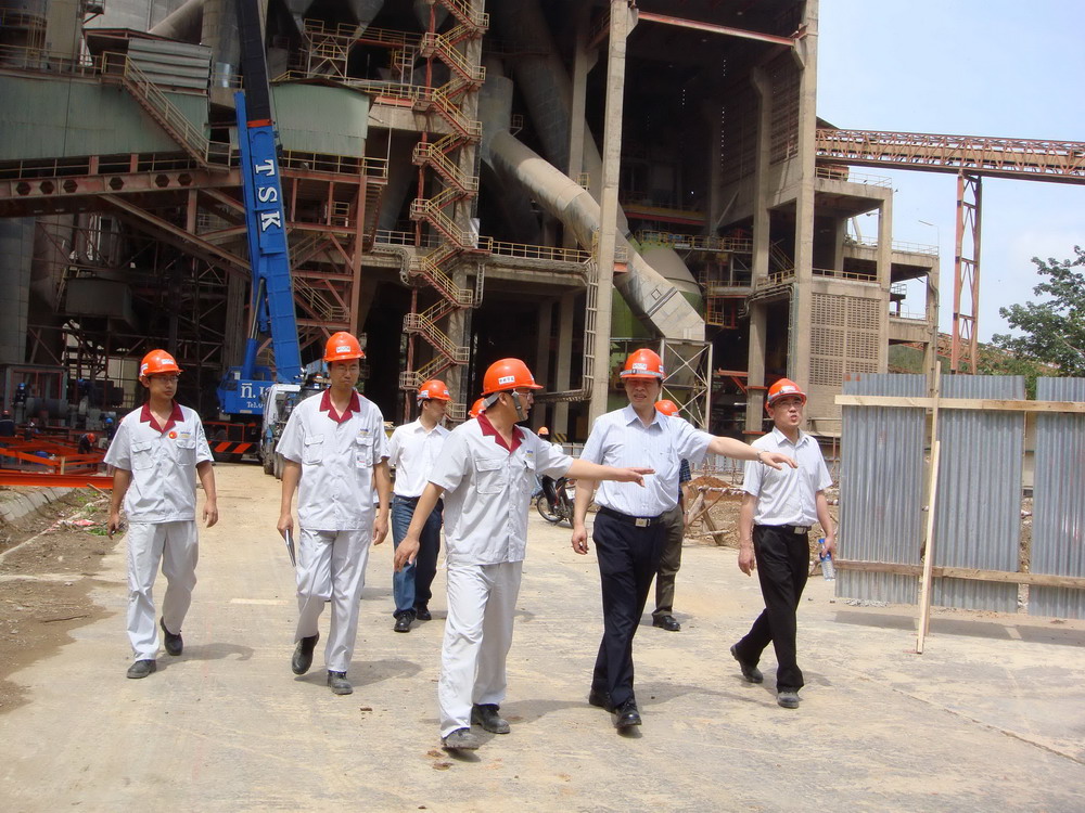 6月,何新平總經(jīng)理、魏文華副總經(jīng)理、董蘭起副總工程師等一行七人,也趕到京都項目現(xiàn)場檢查、指導(dǎo)工作。到現(xiàn)場后顧不上休息,換上安全鞋,戴上安全帽,風(fēng)塵仆仆視察了循環(huán)水冷卻塔、化學(xué)水處理室、汽輪發(fā)電機廠房、SP5鍋爐、AQC5鍋爐、AQC6鍋爐、SP6鍋爐等施工工地。何總對每個項目都仔細觀察,了解各個環(huán)節(jié)的關(guān)鍵點及存在問題,在SP5鍋爐看到所在位置錯綜復(fù)雜,水泥線的輸送從框架中間穿過,并且被水泥線的窯尾、生料磨房、生料輸送三面包圍,又由于和汽輪發(fā)電機廠房相距較近,根本沒有鍋爐鋼架制作場地。就明確指出SP5是京都項目工程中的關(guān)鍵點,加快土建施工速度是首要問題,決不能因為土建而貽誤工期。何總在現(xiàn)場與魏總、董總、王品副部長及京都項目吳蘇軍經(jīng)理商量后,當(dāng)場拍板:為了加快施工進度,將鋼筋混凝土框架改為鋼筋混凝土框架柱,平臺改為鋼結(jié)構(gòu)形式。對其它各點也進行了精辟地一一闡述……
